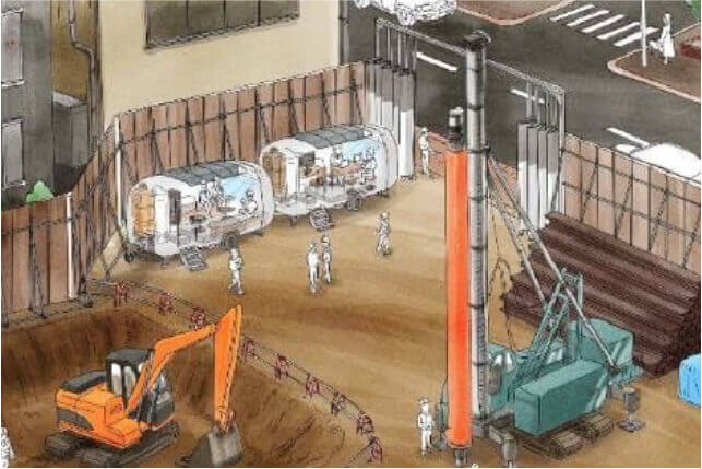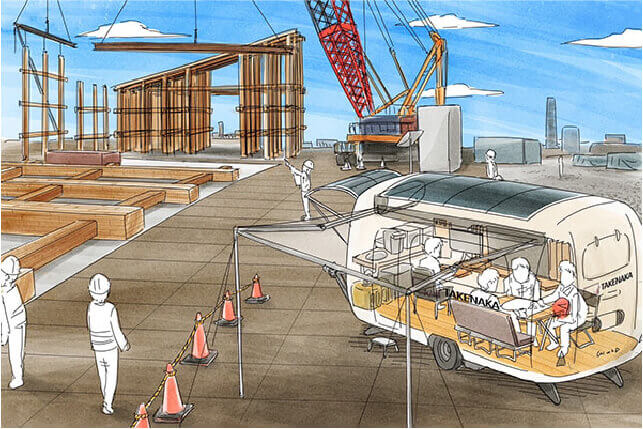 実際の活用事例は、まず大阪・関西万博の工事現場で始まりました。広大な工事現場では、従来の固定された事務所と施工場所との往復に多くの時間が費やされていました。しかし、この移動式事務所は、施工場所のそばまで動かせるため、移動時間の削減と生産性の向上に大きく貢献します。